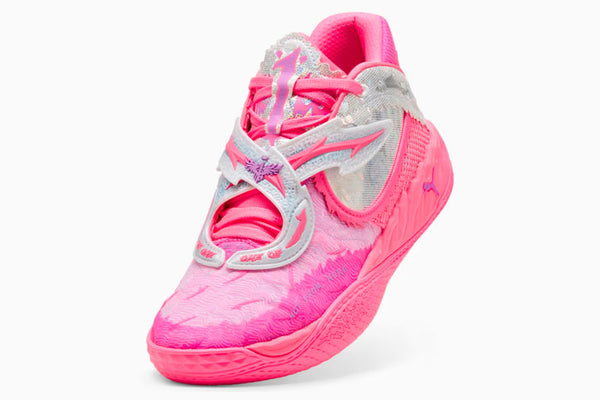 Melo doesn’t play basketball – he hoops. He plays like he’s never been coached. Like he’s in his own world. Just pure instinct and flow. Play like Melo in his newest signature shoe, the MB.05, inspired by Melo’s rockstar status on the court. This hot pink World Tour colourway stands out with iridescent molded barbed wire inspired by Melo’s tattoos and a repeating ‘1’ pattern to reinforce Melo’s 1-of-1 status. Finished off with NITROFOAM™ cushioning for sustained on-court dominance, the MB.05 is made for you to embrace your own 1 of 1.